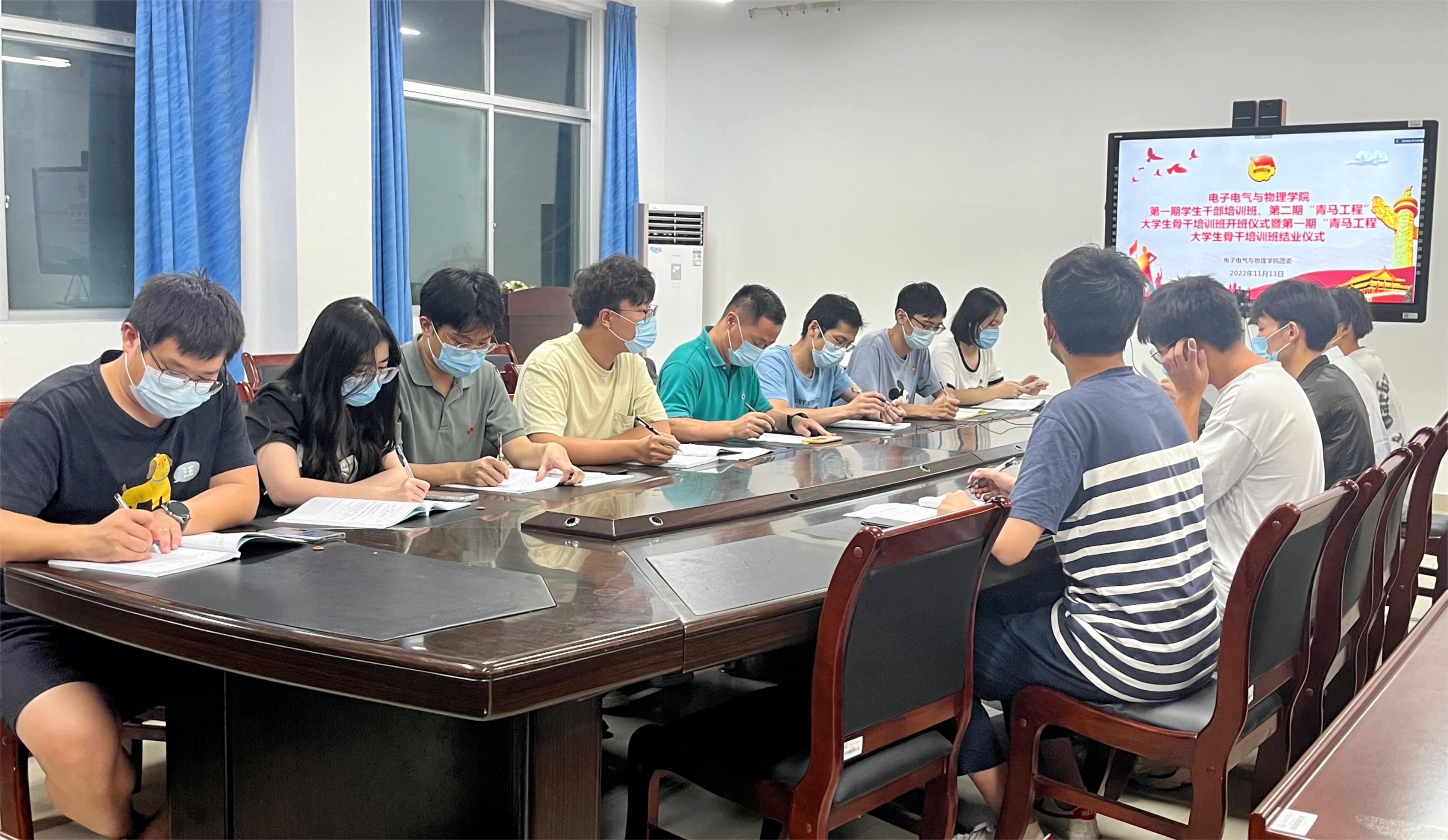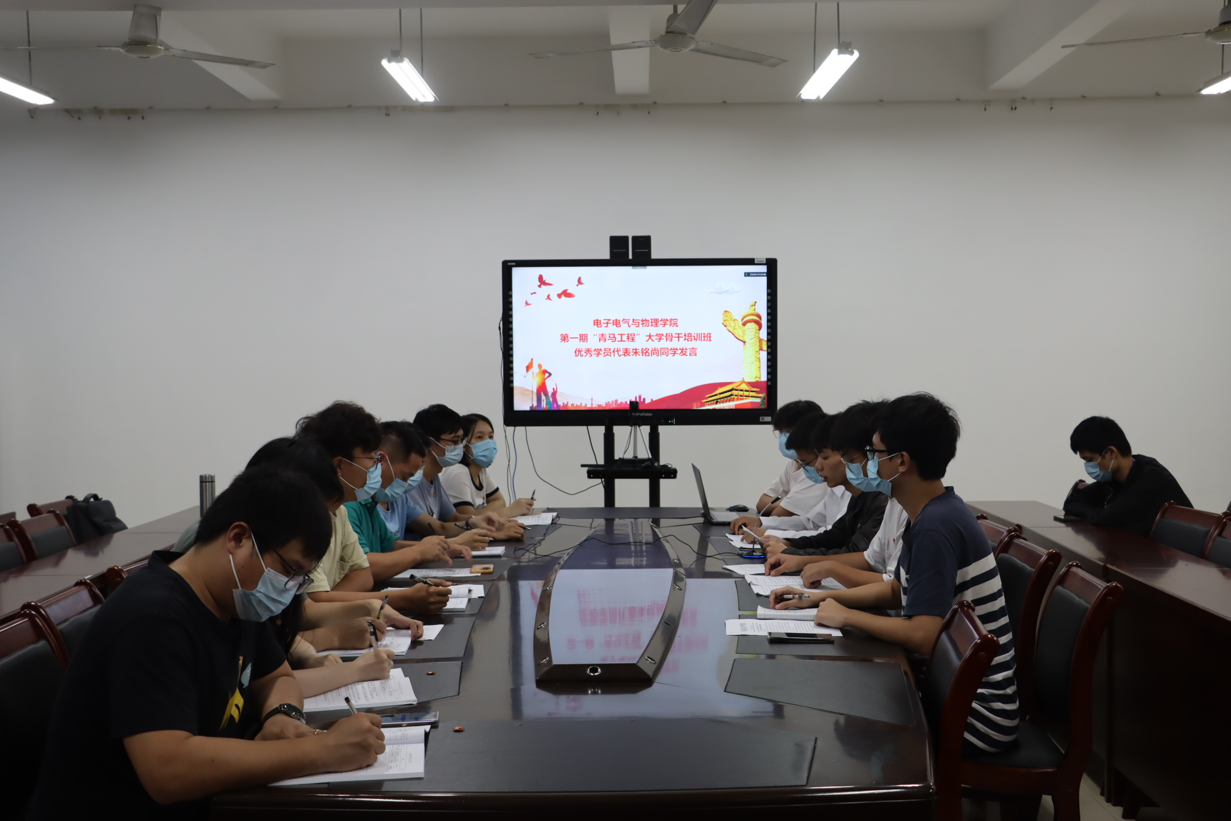 为学习贯彻党的二十大精神,深入推进团中央学校部倡导的青年马克思主义骨干培养工程,进一步加强我院共青团基层组织建设。11月13日晚,电子电气与物理学院通过线上线下相结合的方式举行学院第一期学生干部培训班、第二期“青马工程”大学生骨干培训班开班仪式暨第一期“青马工程”大学生骨干培训班结业仪式。院党委副书记傅少伟,院团委书记陈涵,各团总支书记,第一期、第二期青马班学员,第一期学生干部培训班全体学员及院团委相关职能部门负责人参加此次会议。院学生会主席团候选人刘硕伟同学主持仪式。