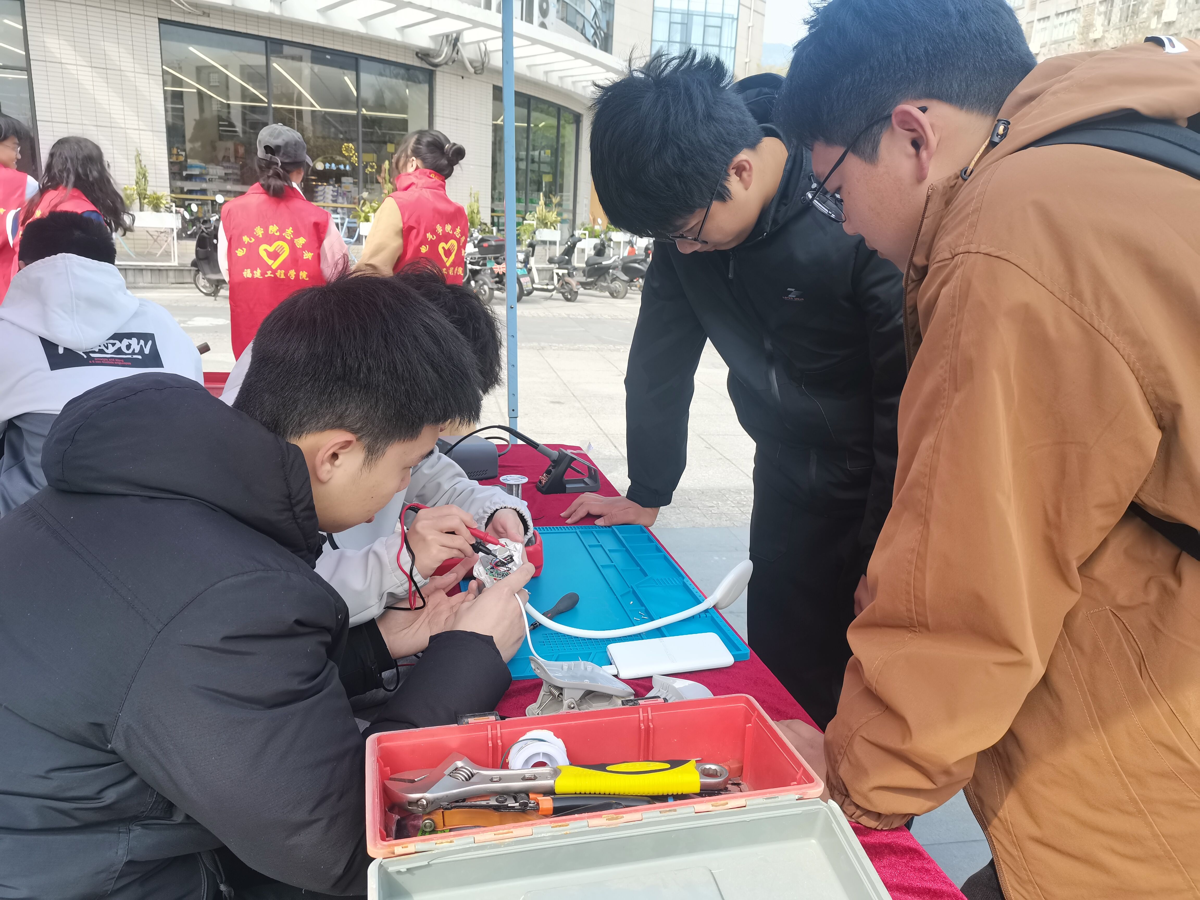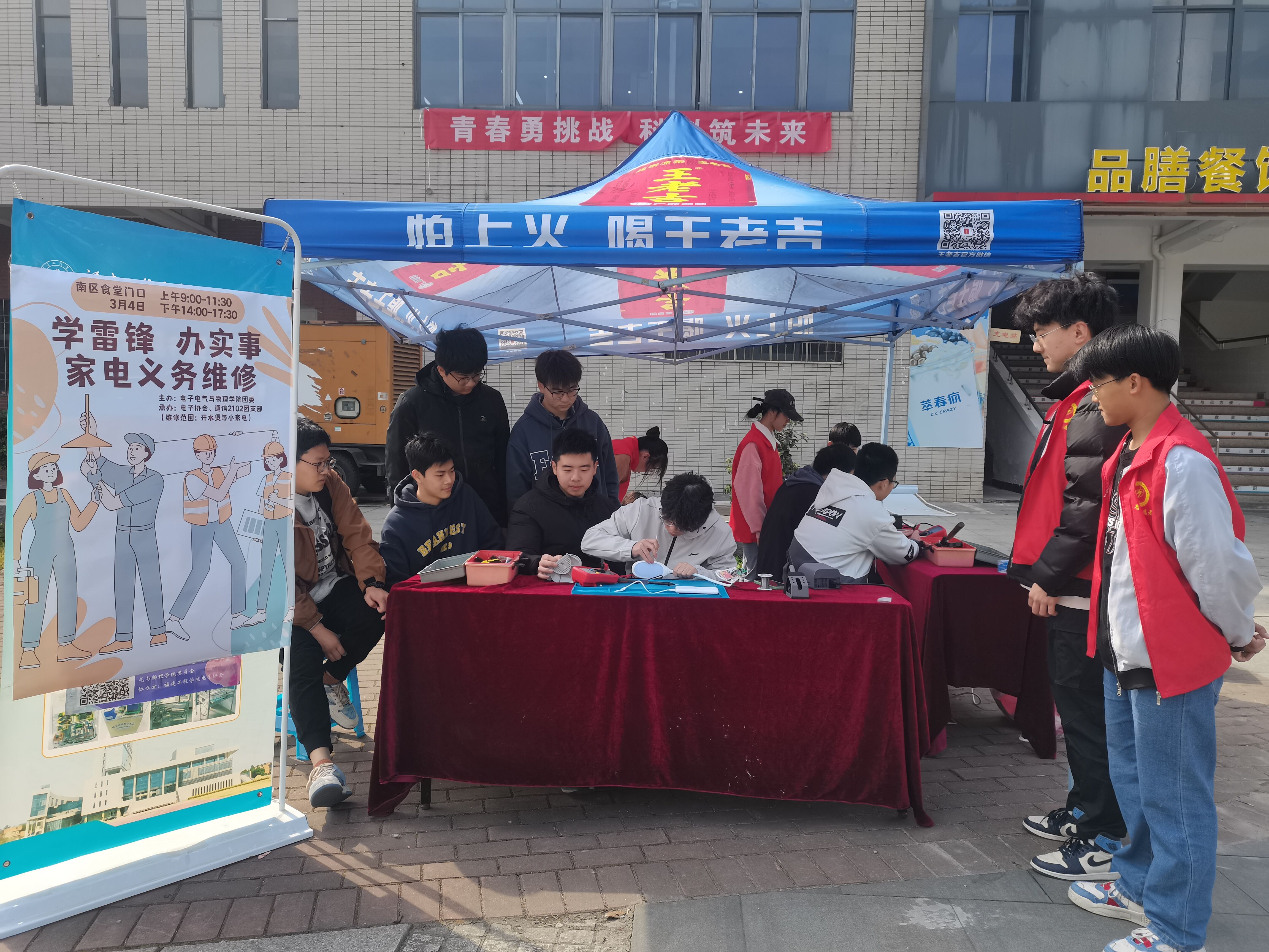 学雷锋、办实事。3月4日,电子电气与物理学院在我校旗山南区开展家电义务维修活动,此次活动由电气学院团委主办,电子协会、通信2102团支部联合承办。