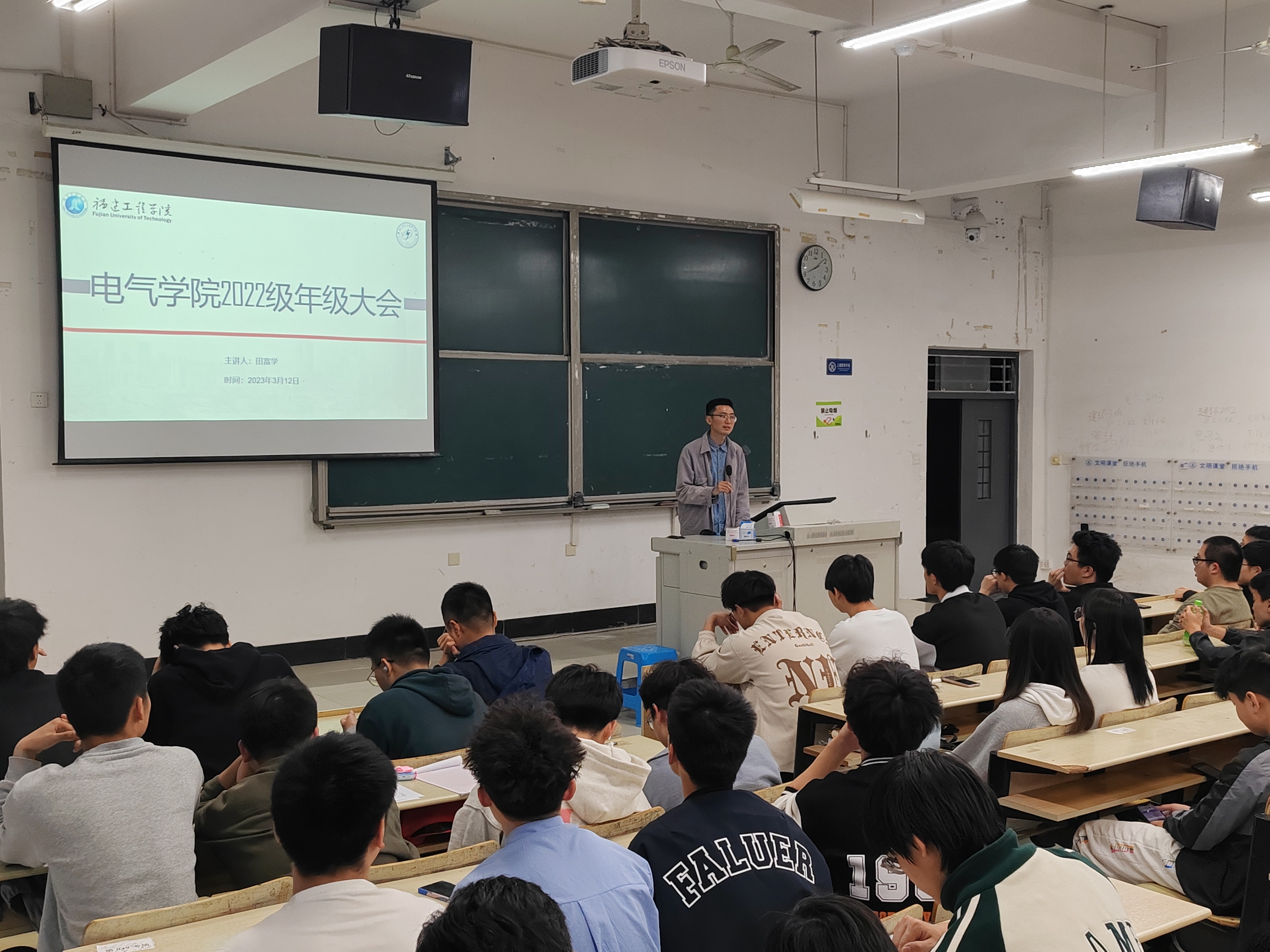 3月12日晚,电子电气与物理学院2022级于旗山北校区大教西-1、大教西-3召开新学期第二次年级大会,会议由辅导员田富学、陈燕主持,学院2022级全体本科生参加。