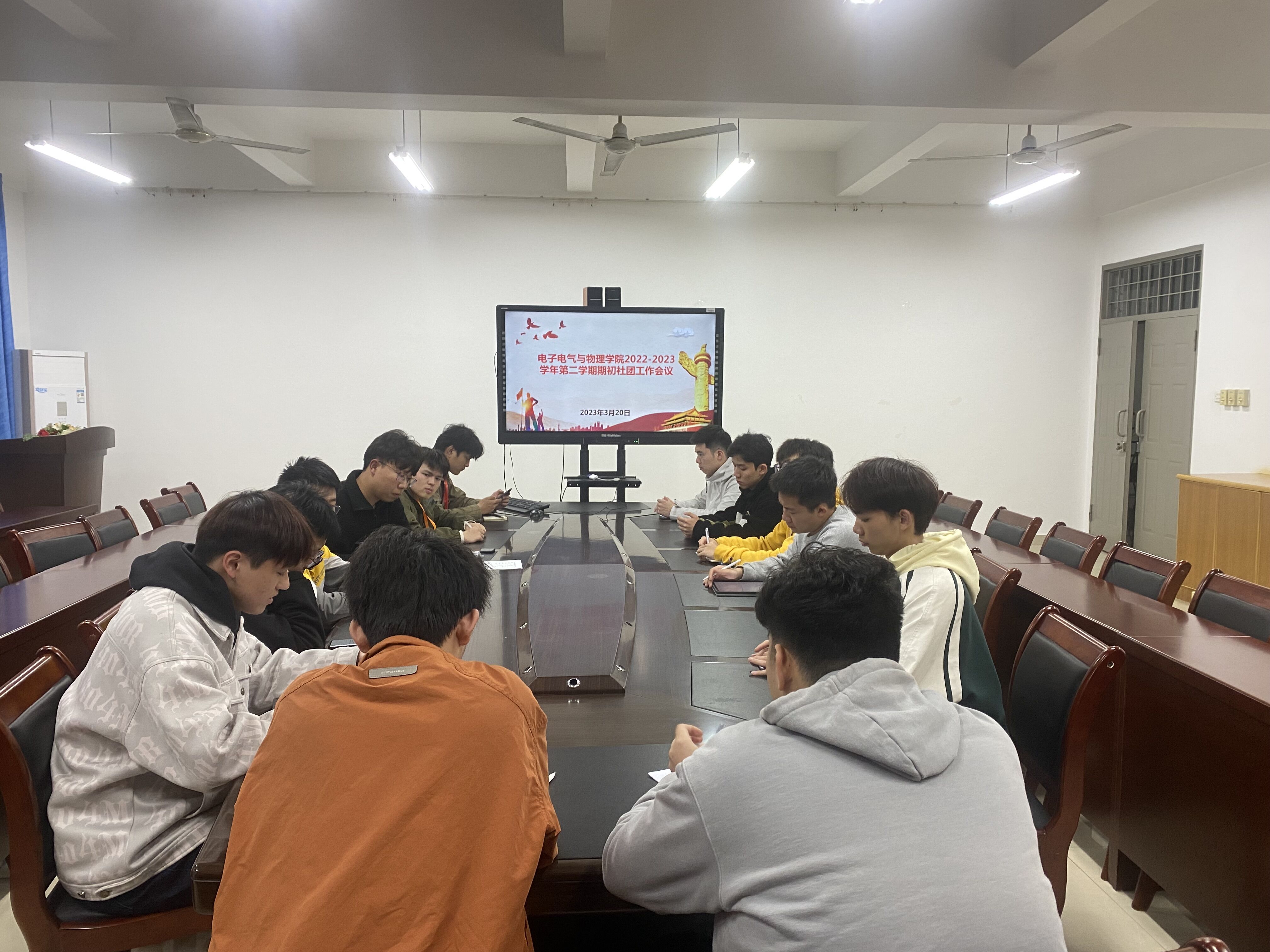 为进一步推动学院学生社团的建设与发展,加强学生社团的组织力与引领力,提升校园文化品位和氛围。3月20日晚,电子电气与物理学院于旗山北校区至诚C1-206会议室召开新学期学生社团工作会议。学院社联、各协会主要负责人参加会议,会议由学院团委书记陈涵主持。