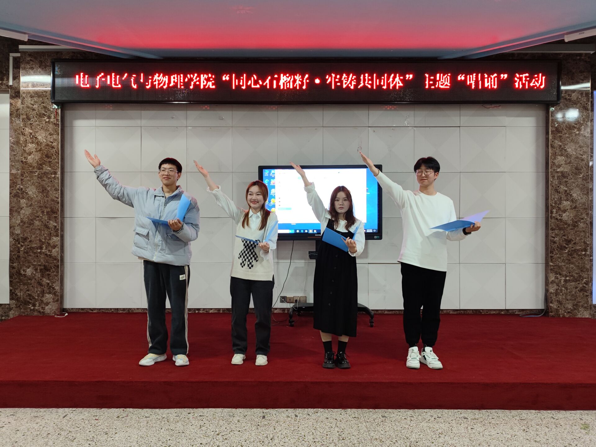 为深入学习党的二十大精神,学习贯彻习近平总书记关于加强和改进民族工作的重要思想,促进民族团结进步教育,践行守望相助理念,坚持铸牢中华民族共同体意识。3月29日晚,电子电气与物理学院在旗山北校区大学生活动中心三楼创意活动室举办“同心石榴籽·牢铸共同体”主题“唱诵”比赛。此次活动由院团委主办,院学生会承办。