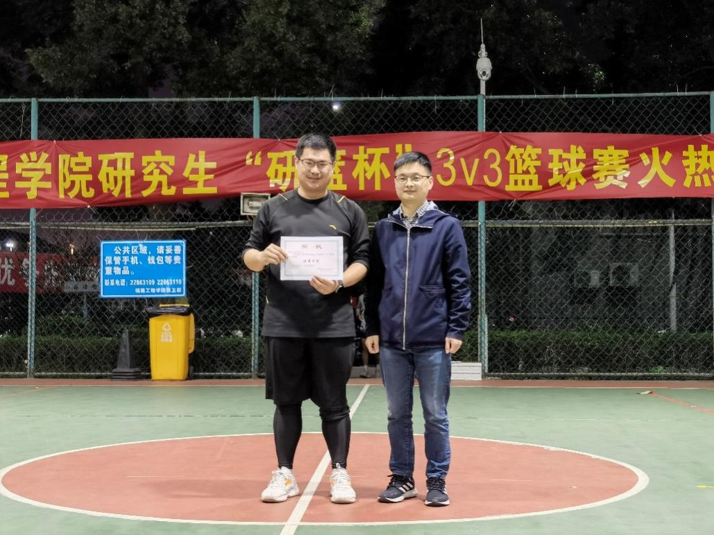 经过激烈的角逐。最终,“青春纪念手册”队获得本次“研篮杯”3V3篮球赛冠军,“泰酷辣”队获亚军,“细狗”队获季军,电子电气与物理学院获得优秀学院奖。