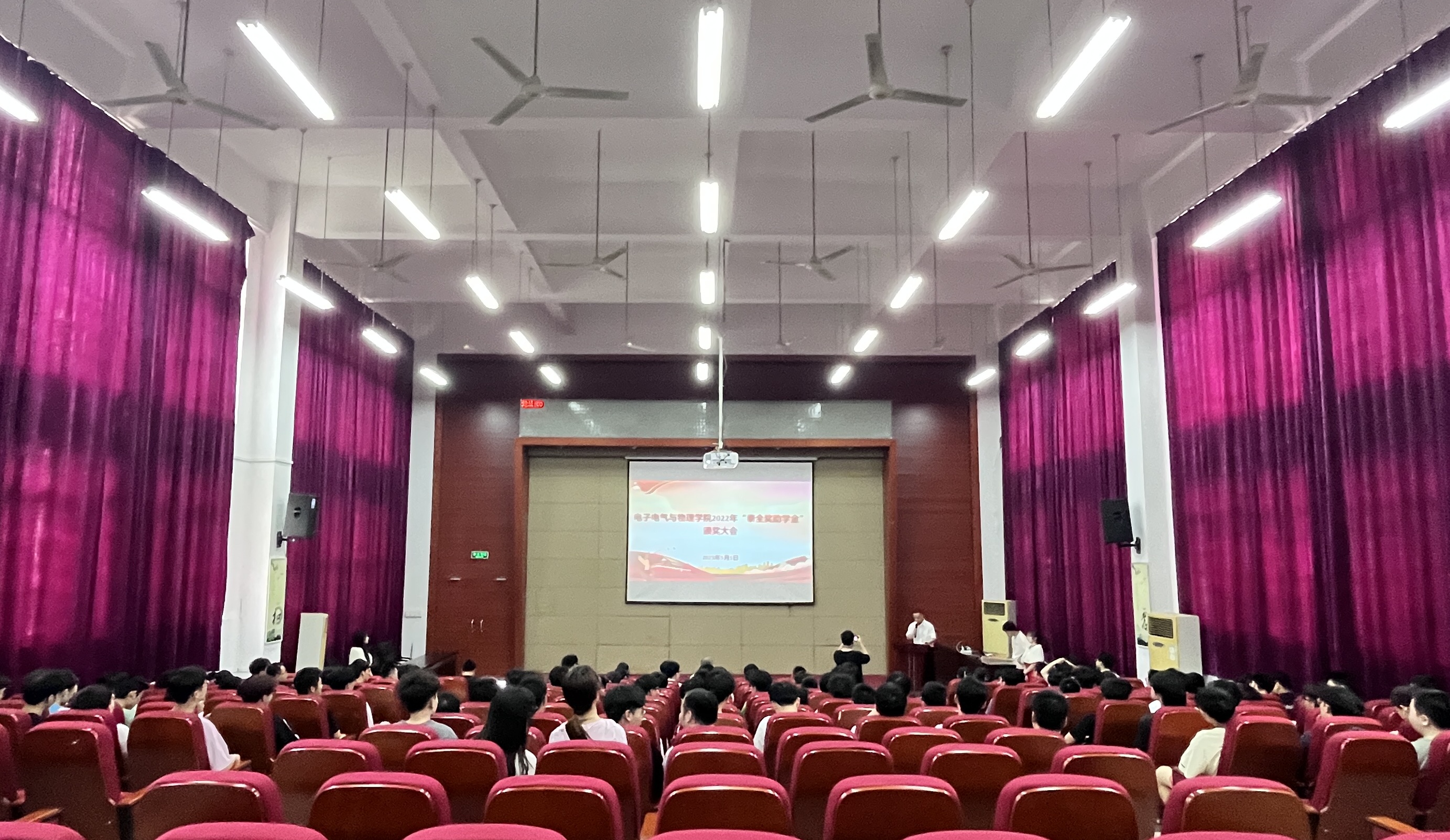 5月5日下午,电子电气与物理学院于旗山北校区至真C4就业报告厅召开了2022年“泰全奖助学金”颁奖大会。福州泰全工业有限公司副总经理李孟林、人资李瑞君,院党委书记林文、院长邹复民、院党委副书记傅少伟、全体学工队伍成员,受表彰学生、各年级学生代表共计140余人参加此次大会,会议由院党委副书记傅少伟主持。