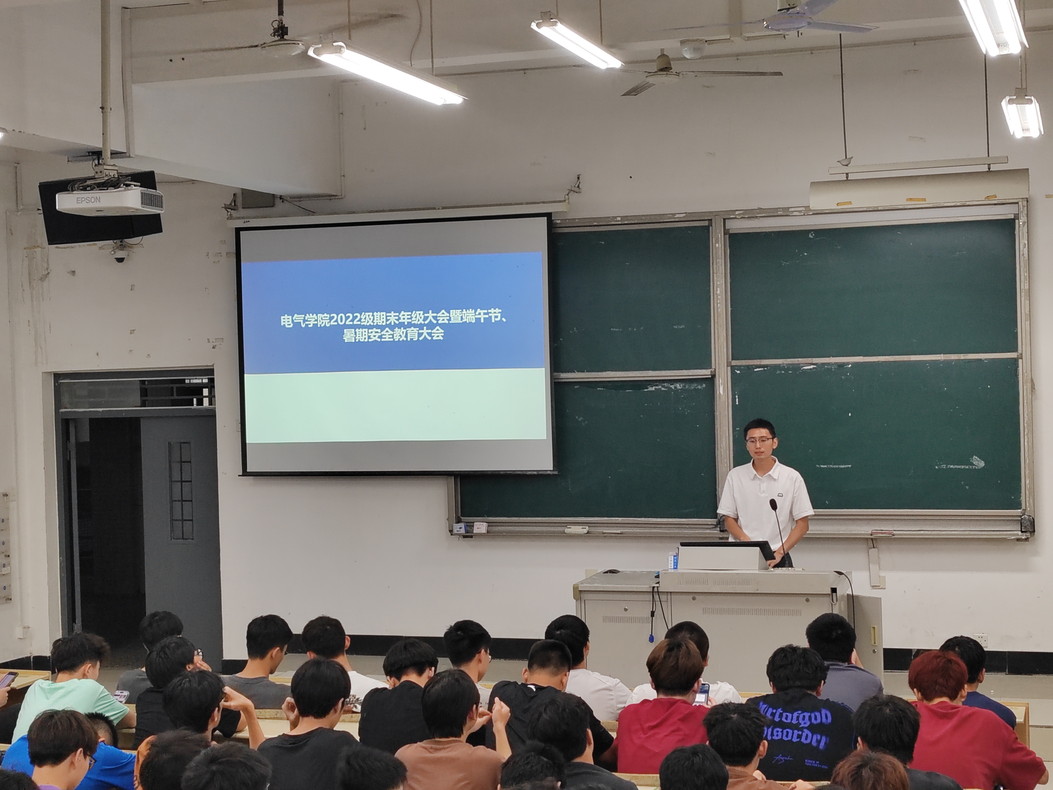 6月15日晚,电子电气与物理学院于旗山北校区大教西1、大教西3教室召开2022级期末年级大会暨端午节安全主题教育大会。本次会议由辅导员田富学、陈燕主持,2022级全体本科生参加此次会议。