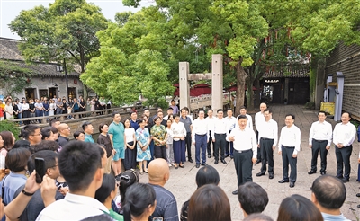 7月5日至7日,中共中央总书记、国家主席、中央军委主席习近平在江苏考察。这是6日上午,习近平在苏州平江历史文化街区,同当地居民和游客亲切交流。 |