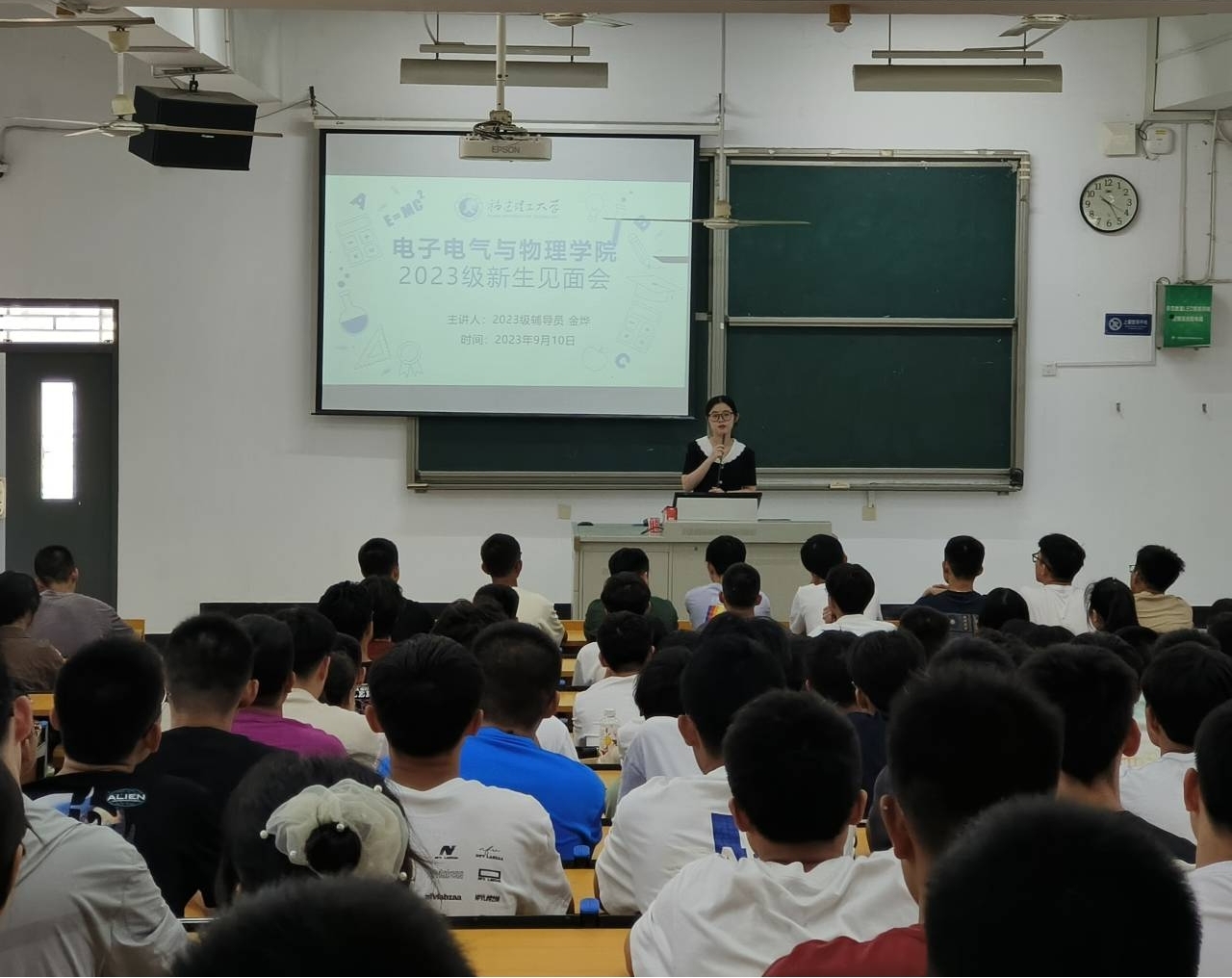 9月10日上午,电子电气与物理学院于旗山北校区大教西-3召开2023级新生见面会暨安全主题教育大会,2023级全体本科新生参与本次会议,会议由2023级辅导员金烨、杨翔宇主持。