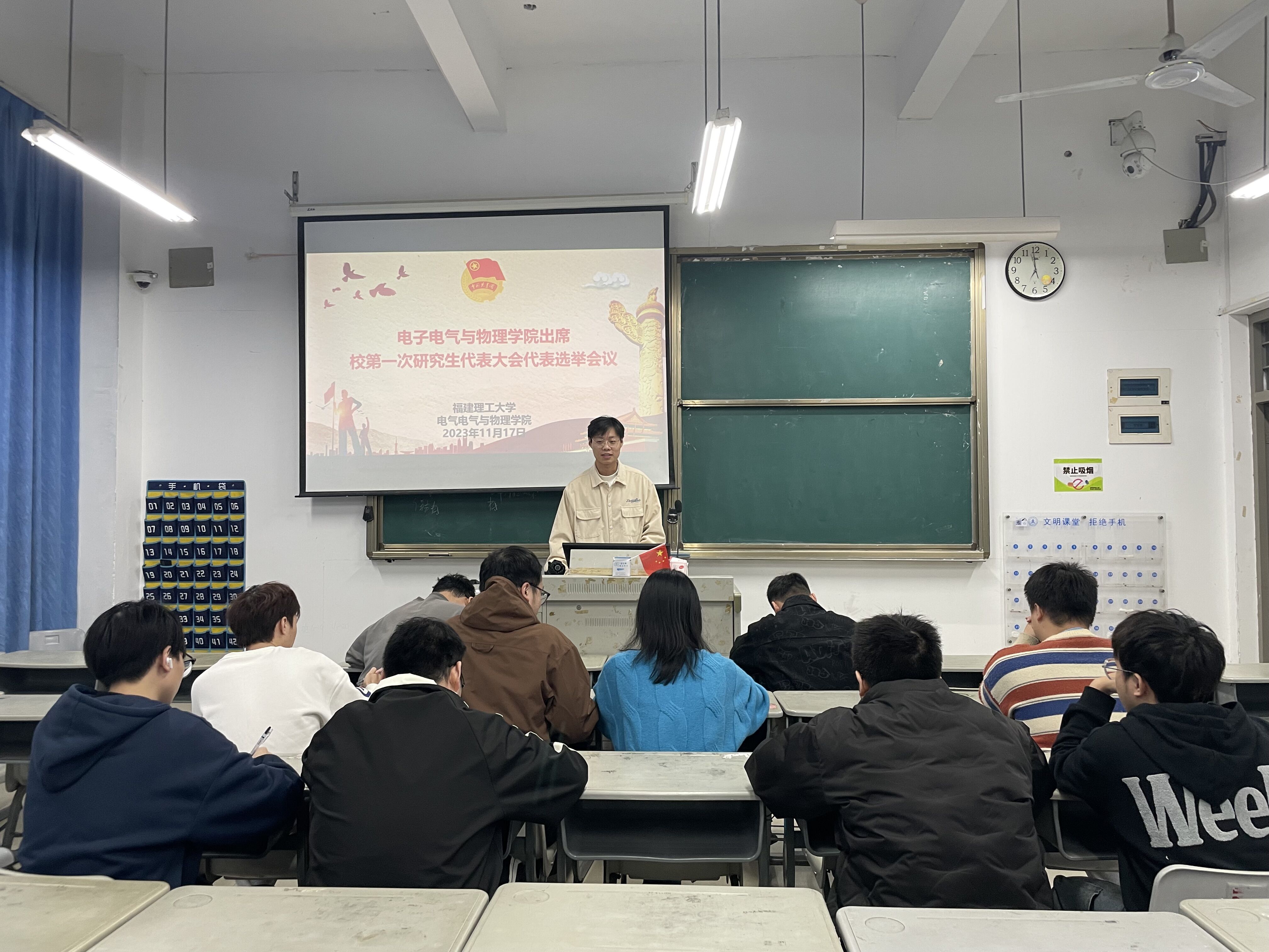 11月17日晚上,电子电气与物理学院于旗山北校区至真C3-102教室成功召开了出席校第一次研究生代表大会代表选举会议。本次会议有研究生代表、校第一次研代会候选人等共10余人参加,由院团委副书记仝哲同学主持。