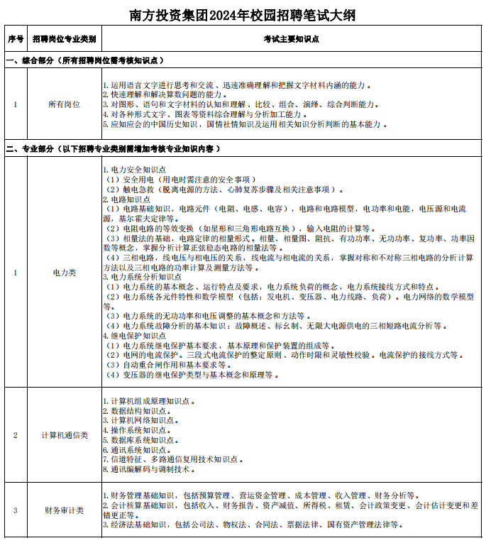 南方投资集团2024年校园招聘主要招聘岗位、招聘专业及学历要求如下: