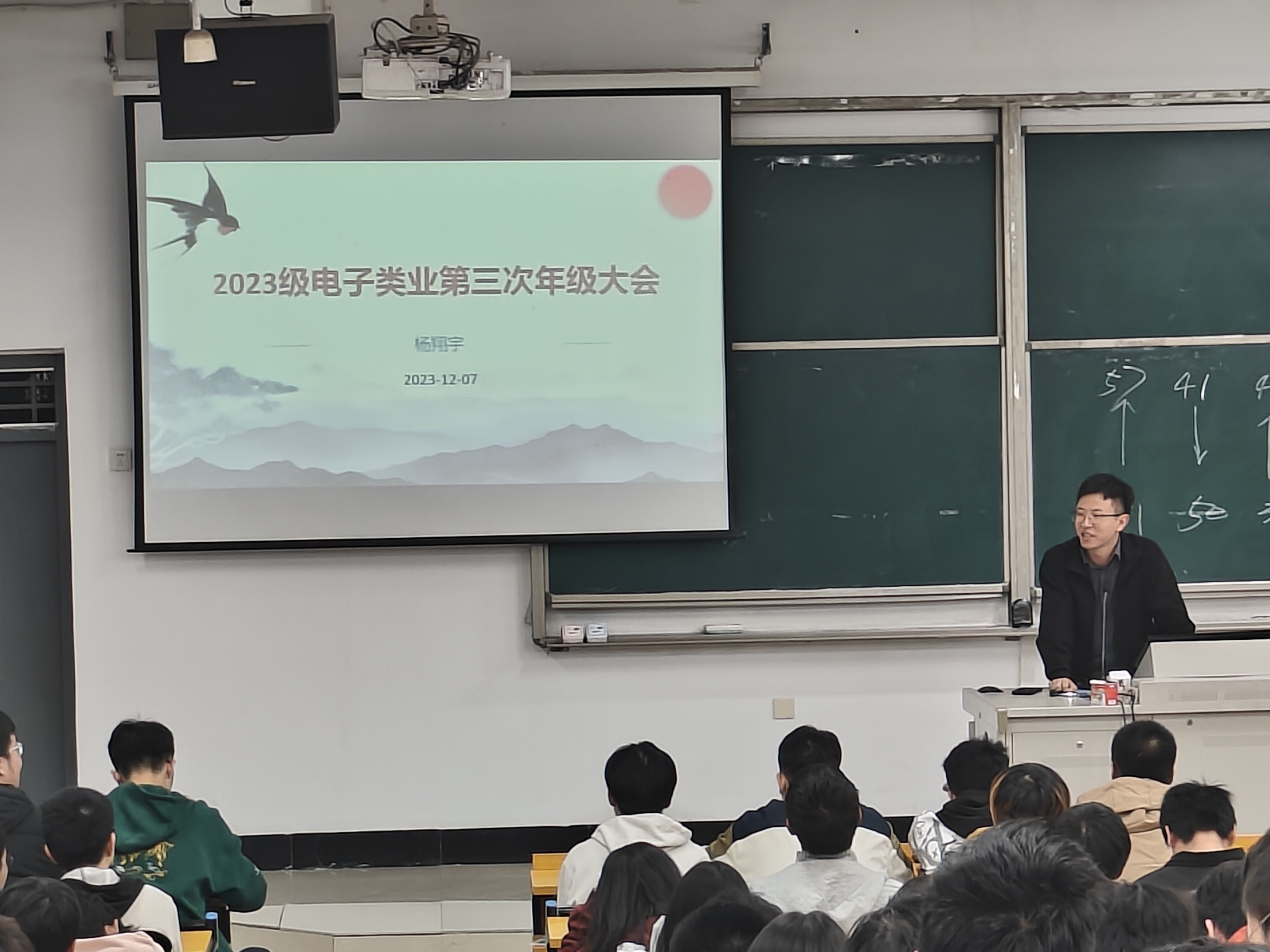为切实增强学生的安全防范意识并引导学生树立正确的学习观念、做好大学规划和期末复习安排,12月7日晚,电子电气与物理学院于旗山北校区大教西1召开2023-2024学年第一学期2023级第三次年级大会。学院2023级全体本科生参加,会议由辅导员杨翔宇、金烨主持。