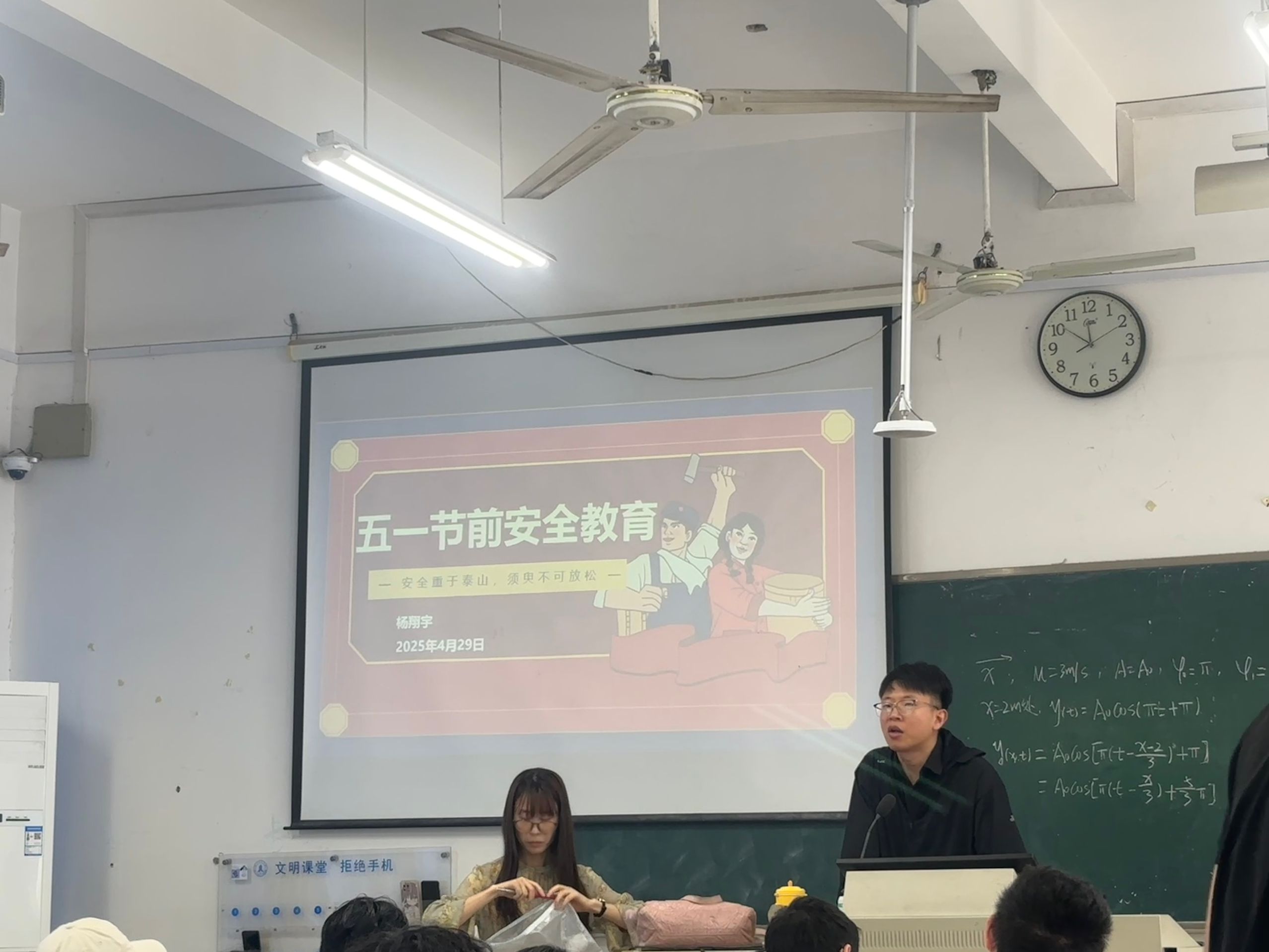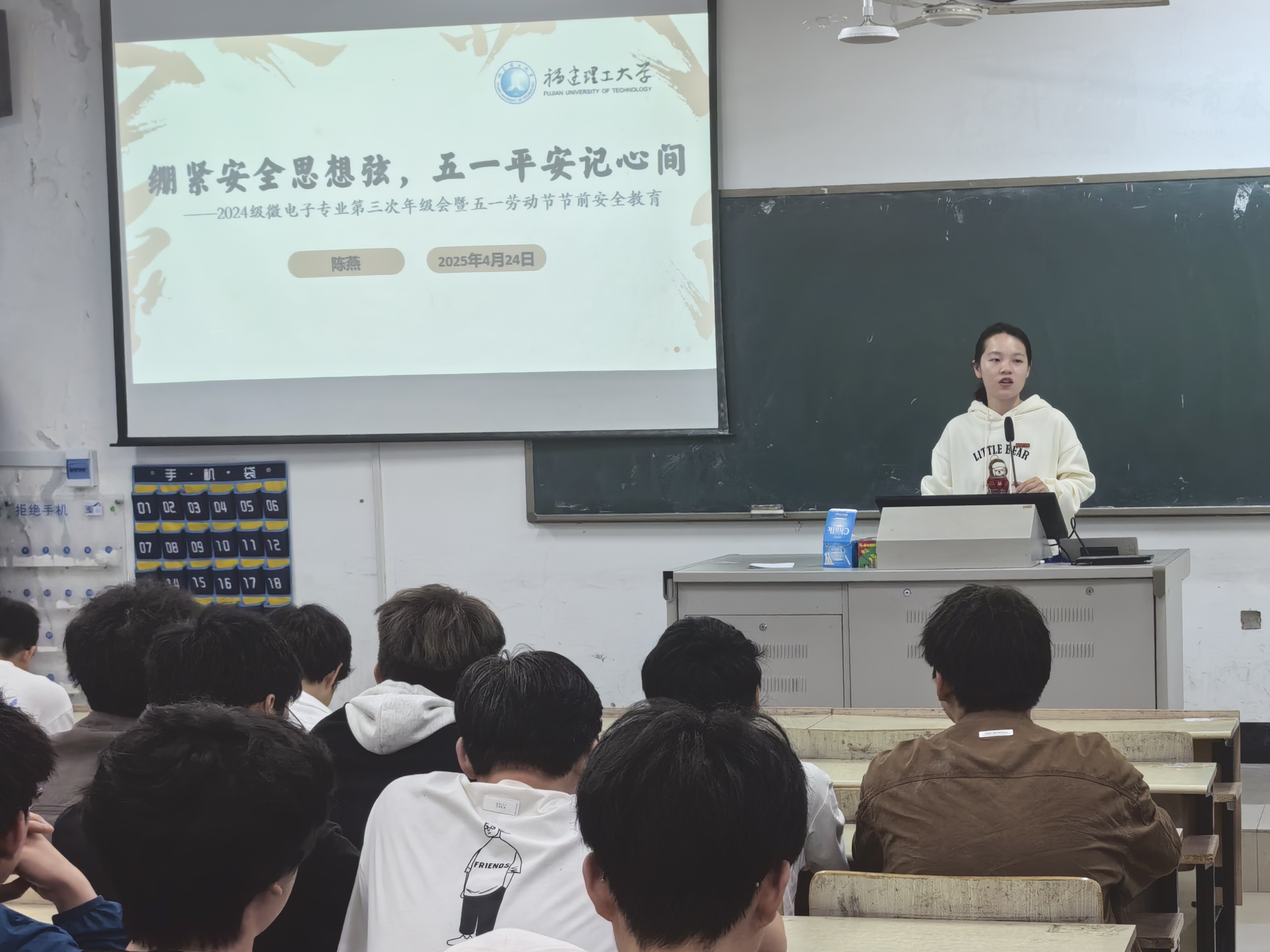 4月27日晚,电子电气与物理学院于旗山北校区大教西1和博6-103教室召开2024级劳动节前安全主题教育大会暨本科专业第六次周例会。会议分别由2024级辅导员陈燕、金烨、刘胜通、杨翔宇主持,2024级全体本科生参会。