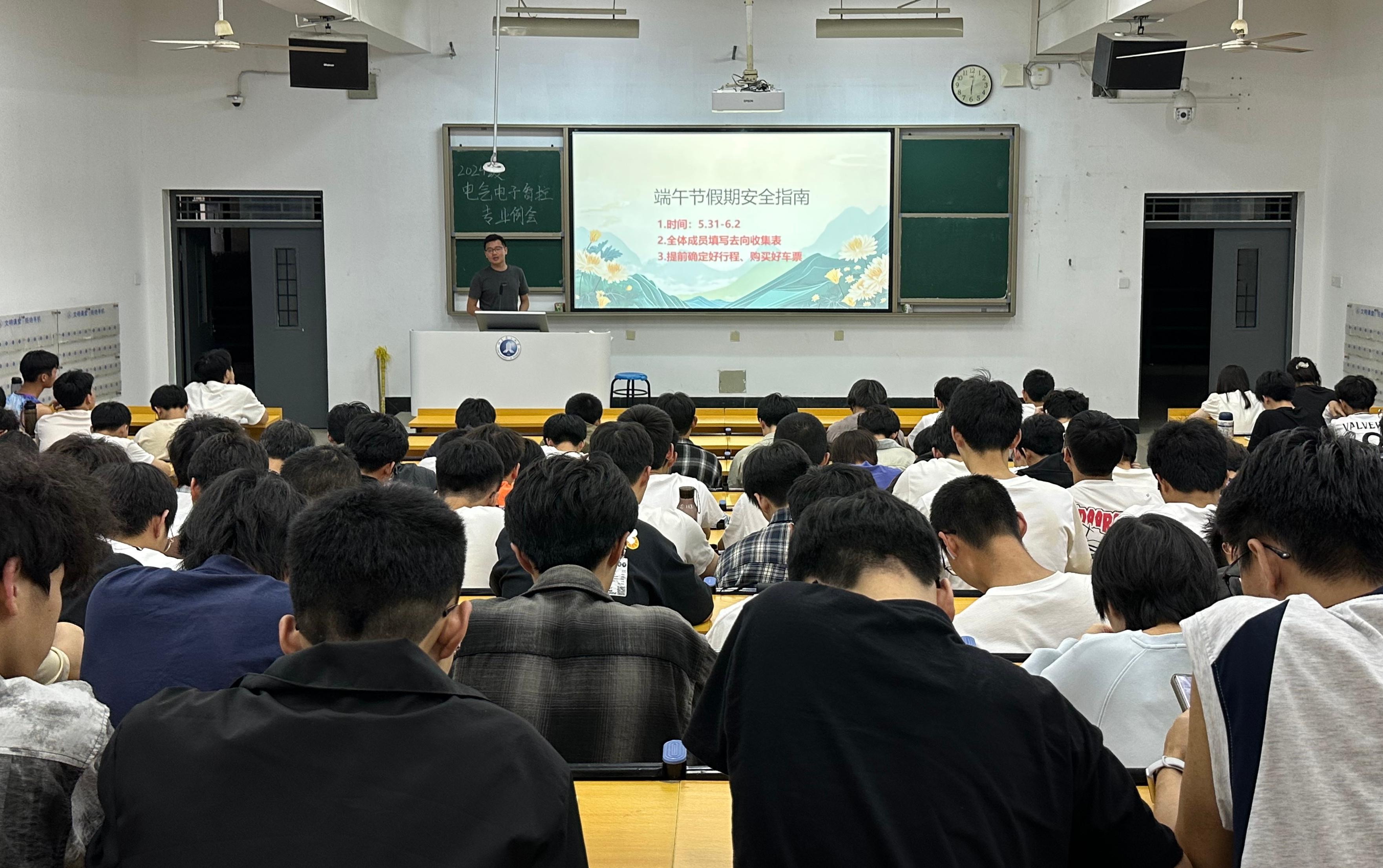 5月25日晚,电子电气与物理学院于旗山北校区大教西3召开2024级端午节假期安全主题教育大会暨专业第八次周例会。会议由辅导员洪誉嘉、刘胜通主持,2024级全体本科生参加。