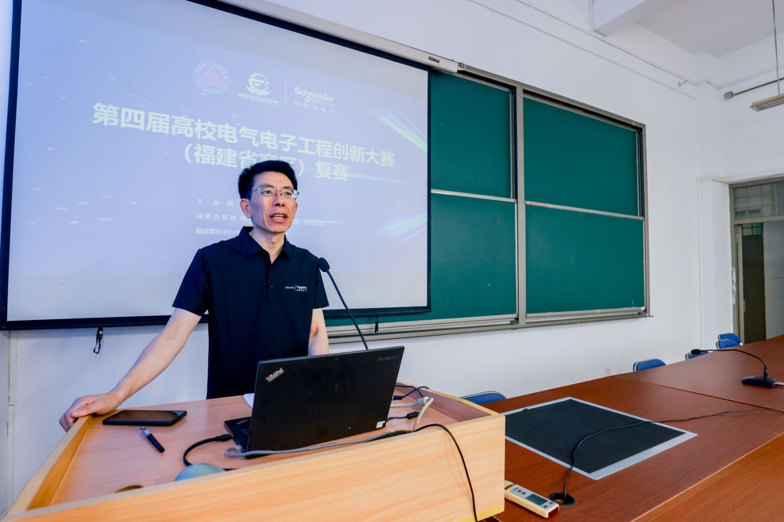 2025年7月6日,由中国电工技术学会主办、施耐德电气(中国)有限公司为战略合作伙伴的第四届高校电气电子工程创新大赛(福建赛区)复赛在福建理工大学成功举办。此次福建省复赛由福建理工大学电子电气与物理学院承办、电子信息与电气技术国家级实验教学示范中心和宁德新能源技术研究院协办。电子电气与物理学院邹复民院长为复赛开幕式致辞。