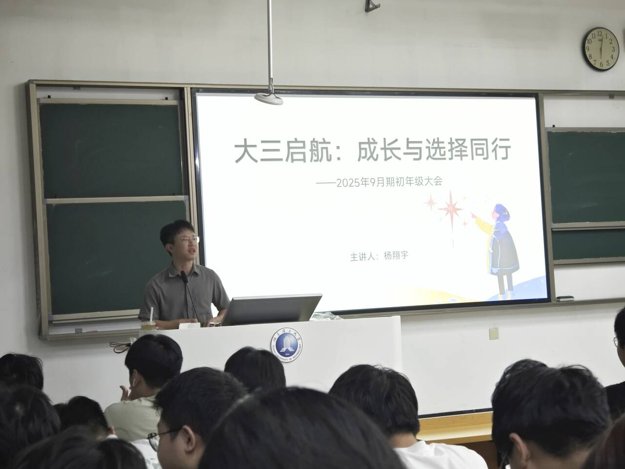 为帮助2023级学生明确大三发展方向,夯实学业基础,9月11日晚,电子电气与物理学院于旗山北校区大教西4教室召开2023级期初年级大会,会议由辅导员王淑霞、杨翔宇主持,学院2023级全体本科生参会。
