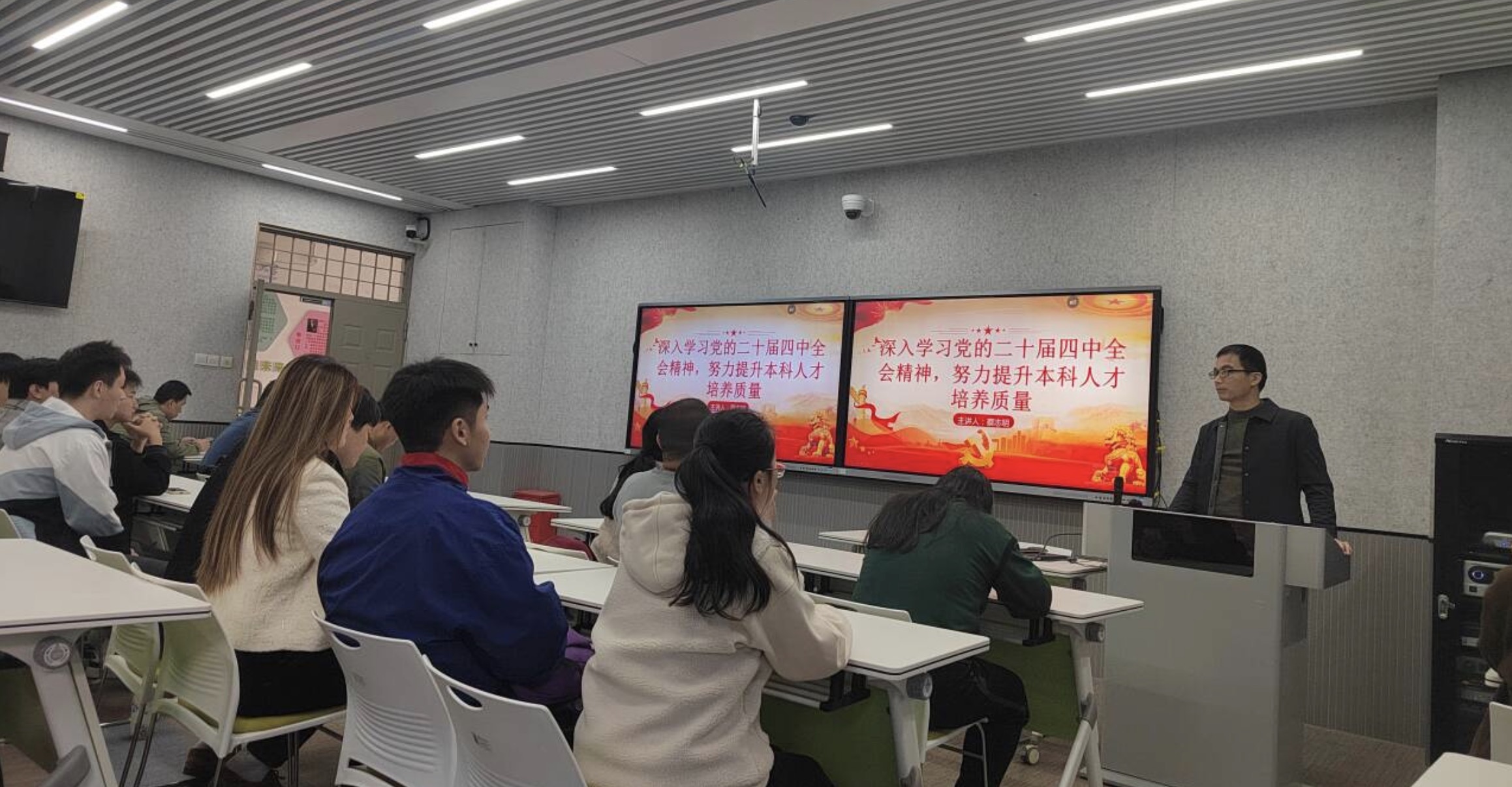 蔡志明以《深入学习党的二十届四中全会精神,努力提升本科人才培养质量》为题,从“党的二十届四中全会召开的重要意义”“统筹教育强国、科技强国、人才强国建设”和“我们应当如何作为”三个方面为大家做深入讲解。