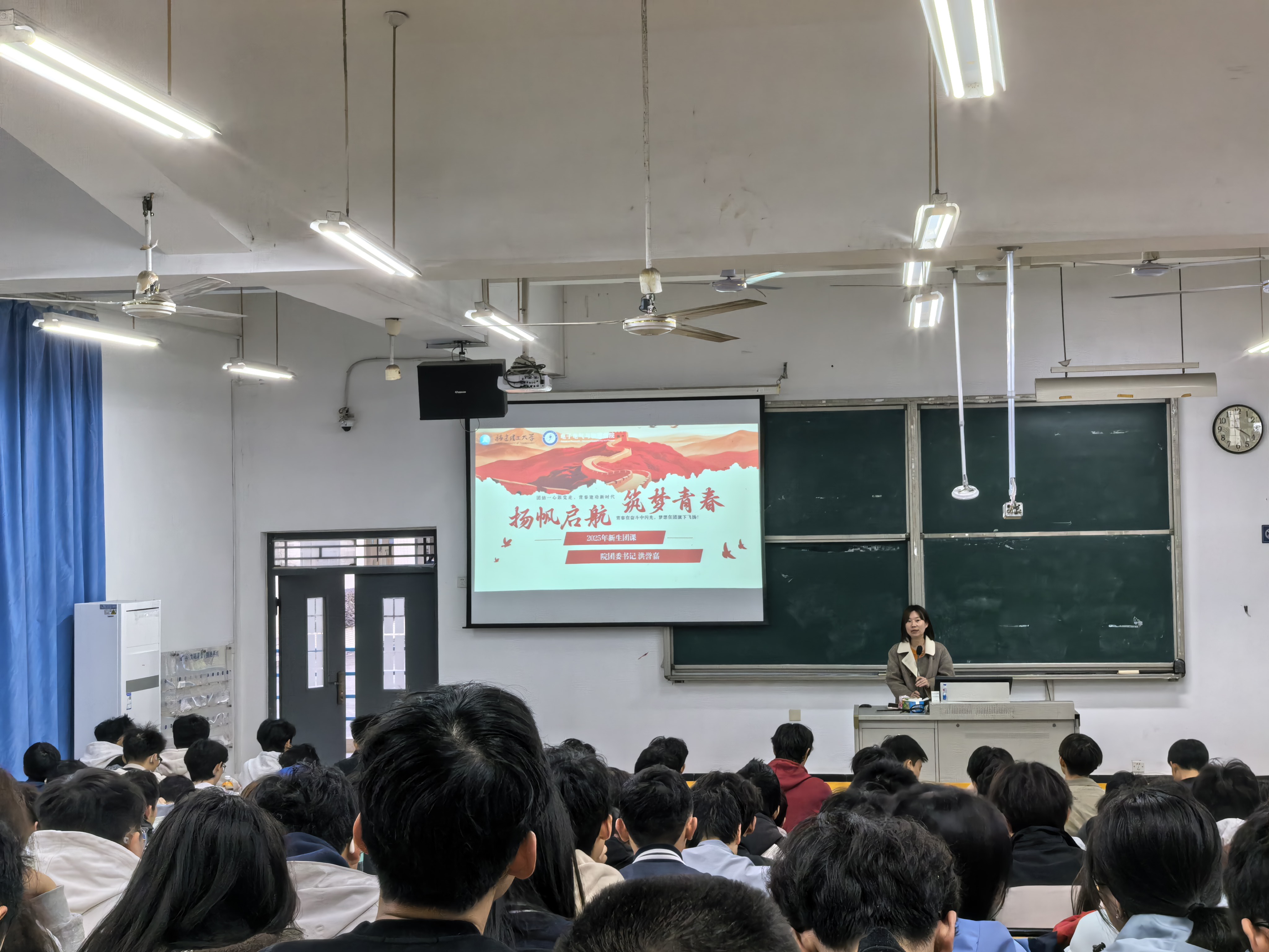 为强化新生思想政治教育,引领新生坚定理想信念、明确使命担当,12月17日下午,电子电气与物理学院于旗山北校区大教西3、大教西1教室开展2025级新生团课。2025级全体本科生、2025级辅导员参加团课,院团委书记洪誉嘉担任主讲。