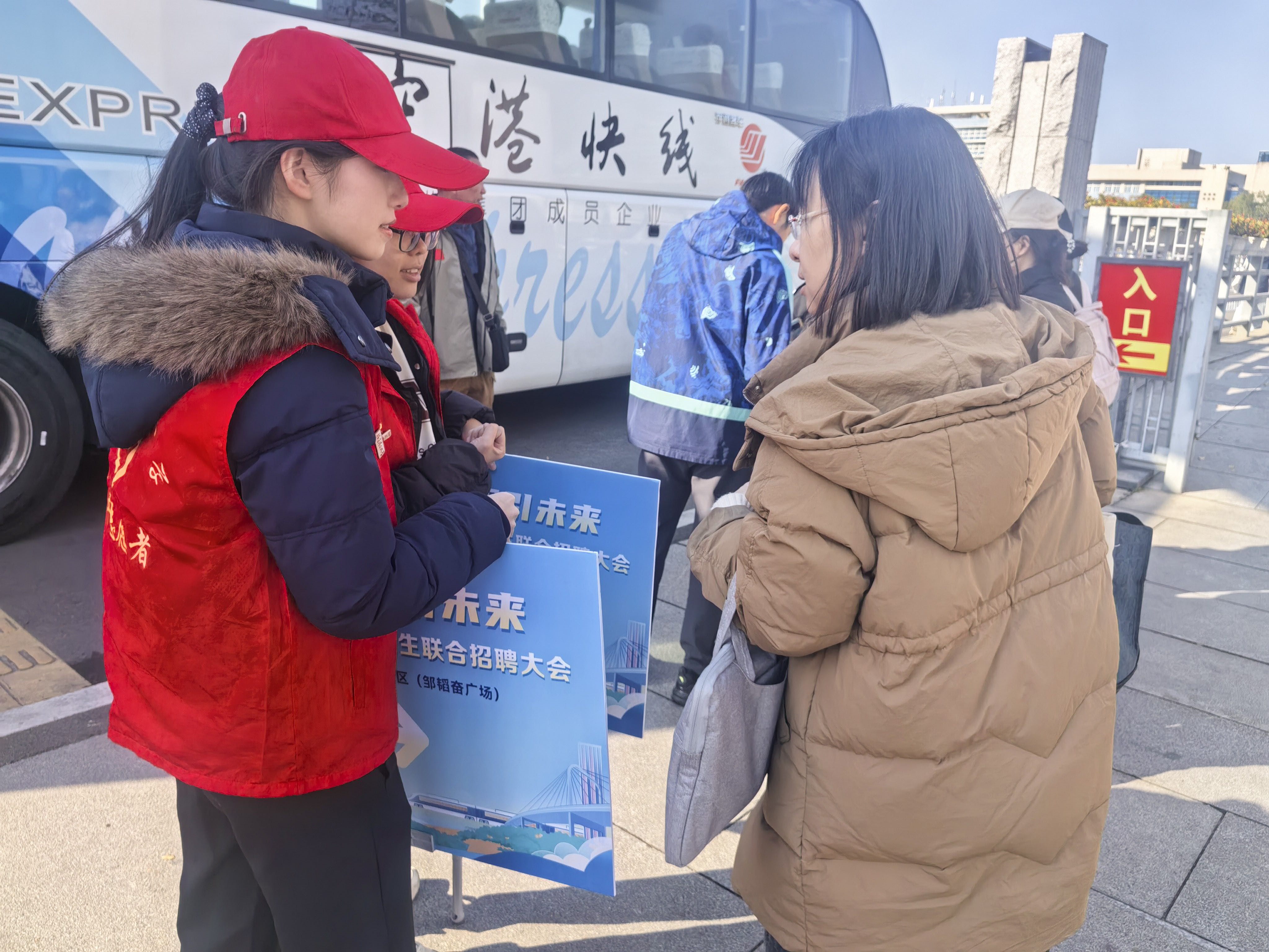招聘会期间,身着统一志愿服装的我院志愿者们,以高度的责任感、严谨的工作态度和饱满的热情活跃在会场各个角落,成为现场一道亮丽的“志愿红”风景线。志愿者们默契协作,快速响应解决各类问题,充分展现了我院学子的责任担当与良好素养。在志愿者们的全力保障下,招聘会现场秩序井然、气氛热烈活跃。
