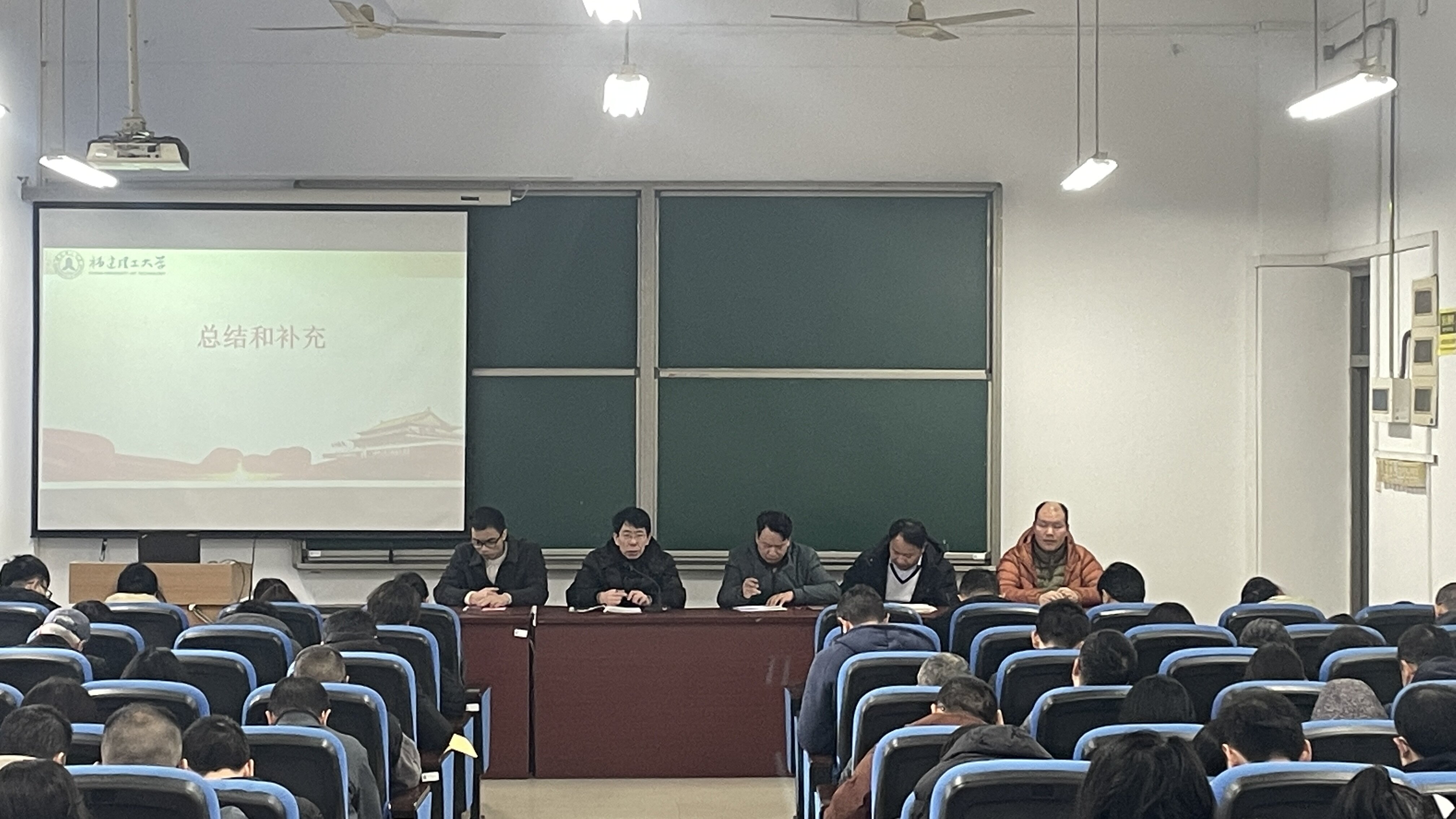 林文书记在总结中对全院教职工过去一学期的辛勤工作和付出表示由衷感谢。他强调,一是要持续深化理论学习,把党的创新理论融入教育教学、科研攻关等各项工作中,以高质量党建引领学院高质量发展;二是要狠抓工作落实,对照各项工作部署,明确责任分工,确保寒假期间各项任务有序推进、新学期工作顺利开局;三是要严守安全底线,切实做好假期校园安全、学生管理、廉洁自律等工作,筑牢学院发展安全屏障;四是要聚焦核心任务,全力推进学科建设、人才培养、科研创新、毕业生就业和130周年校庆等重点工作,为学院内涵发展、特色发展注入强劲动力,助力学校高水平创新型理工大学建设。